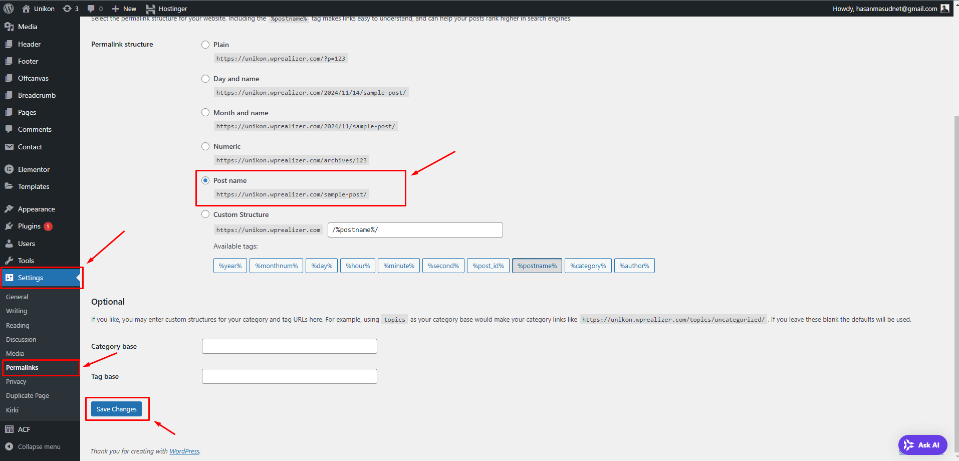 permalink, navigate to Settings -> Permalink and then click on